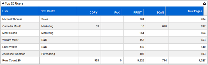 In this version, the translated terms are actually held against the original set of dashboards in the database. Let’s take for example the “Executive Summary” dashboard. There’s a component called “Top 20 Users” with a “Cost Centre” as the second data point.